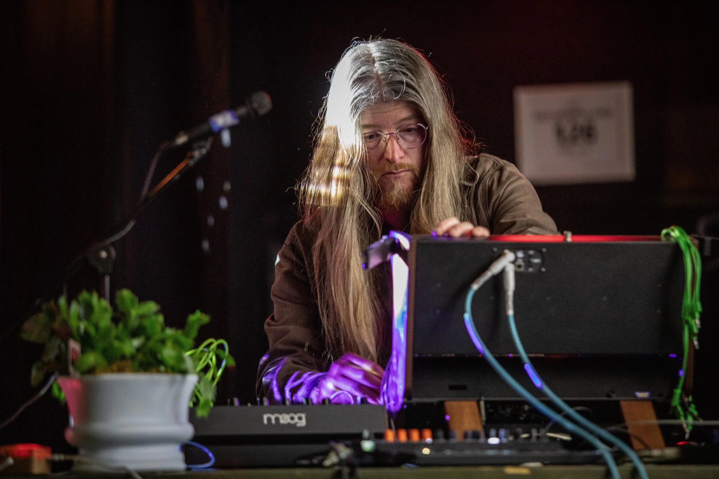Kuykendall resides on Wild Mountain in Osage County, where the natural environment profoundly shapes his creative practice. Recent projects delve into biosonification, capturing the bioelectrical signals emitted by plants and translating them into music. This innovative method reflects his ongoing exploration of the relationship between the natural world and human creativity, blurring the lines between art, science, and technology. Over the years, Kuykendall has become a cornerstone of Oklahoma’s experimental music scene. Through his work as founder and curator of Unknown Tone Records, he has fostered a global community of ambient and experimental musicians, producing and releasing over 60 albums from artists spanning 30 countries. His contributions extend beyond music to include designing album artwork, directing music videos, and composing original film scores.